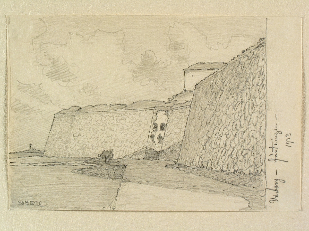 Teckning av Ferdinand Boberg. Varberg, Fästningen