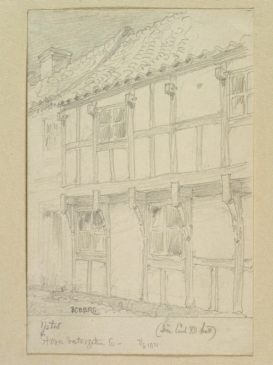 Teckning av Ferdinand Boberg. Ystad, Stora Västergatan 6