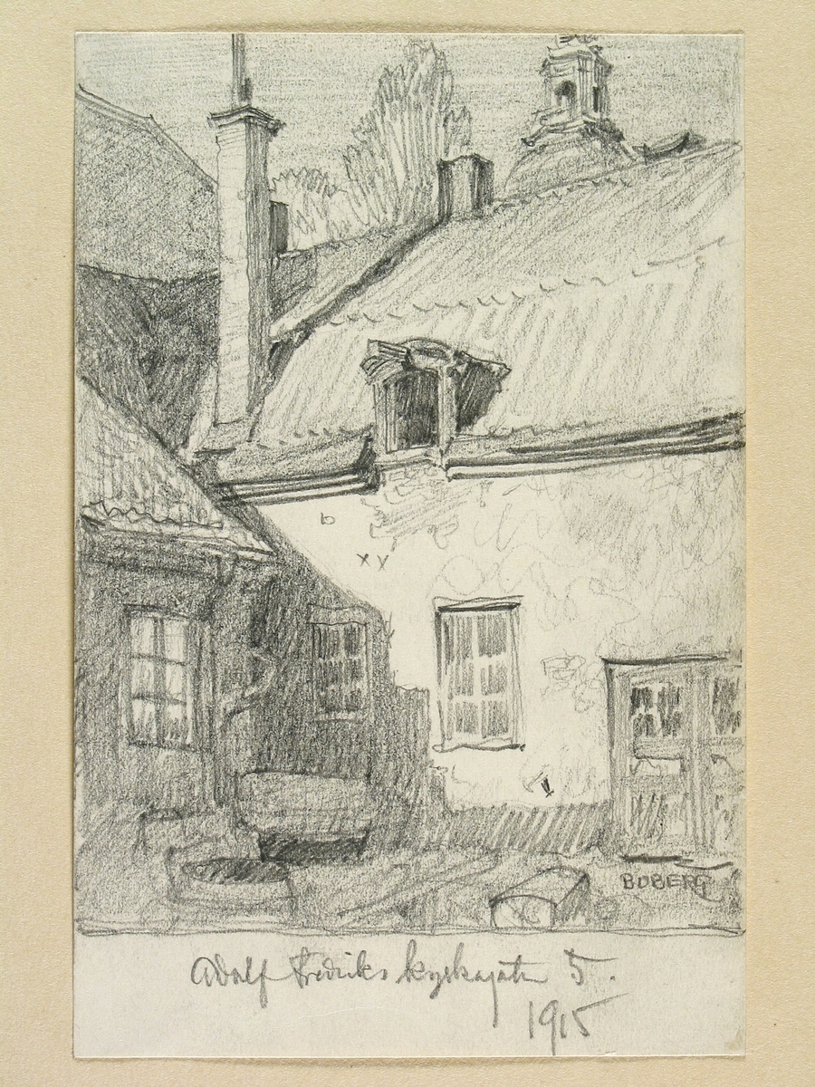 Teckning av Ferdinand Boberg. Stockholm, Norrmalm, Kv. Vargen, Adolf Fr. Kyrkog. 5