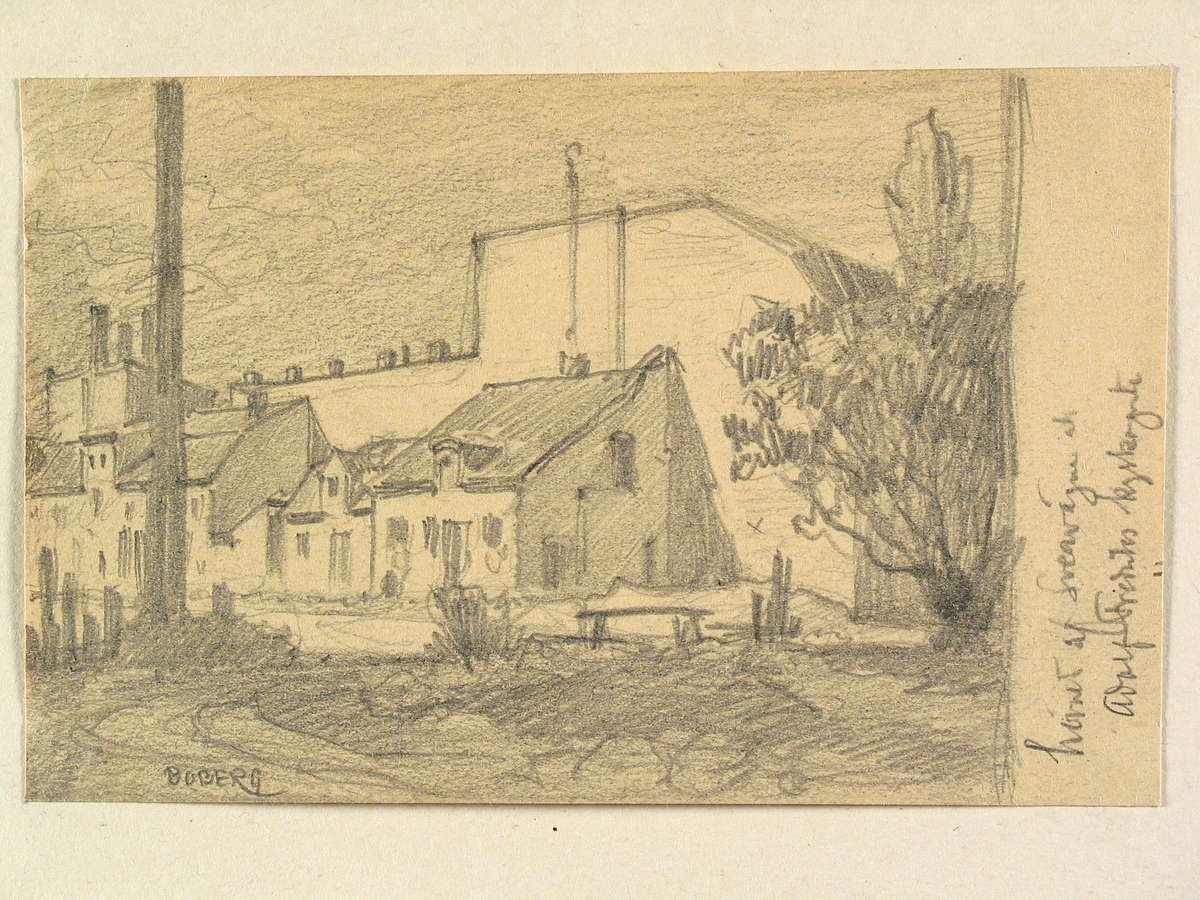 Teckning av Ferdinand Boberg. Stockholm, Norrmalm, Kv. Sveavägen, Adolf Fredr. kyrkog.