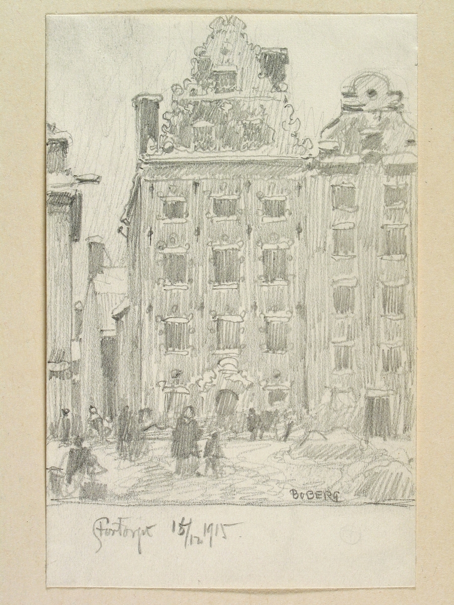 Teckning av Ferdinand Boberg. Stockholm, Staden inom br., Kv. Echo 1,2,3, Stortorget (18)-20