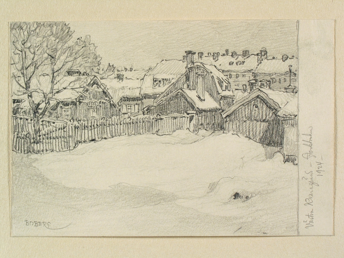 Teckning av Ferdinand Boberg. Stockholm, Söder, Kv. V. Kvarngr.