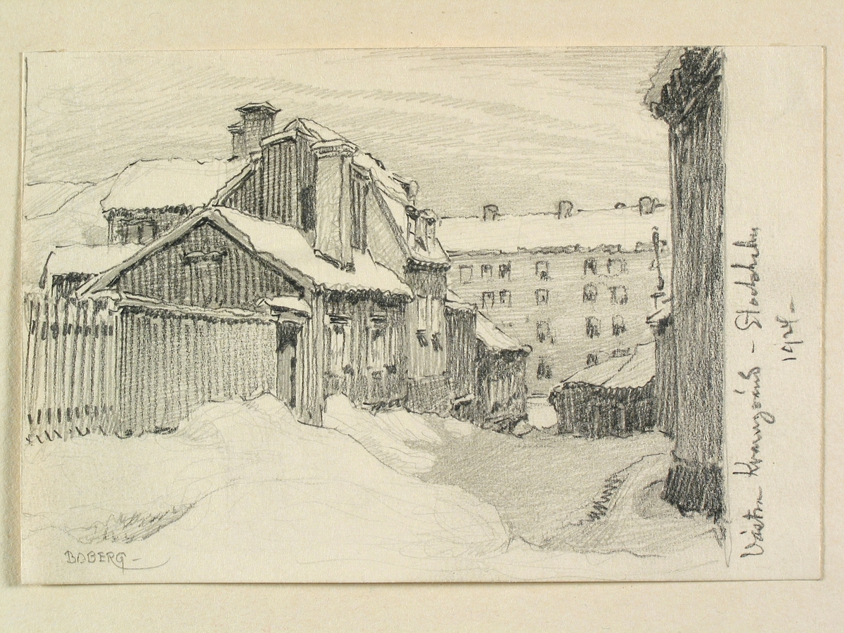Teckning av Ferdinand Boberg. Stockholm, Söder, Kv. V. Kvarngr.