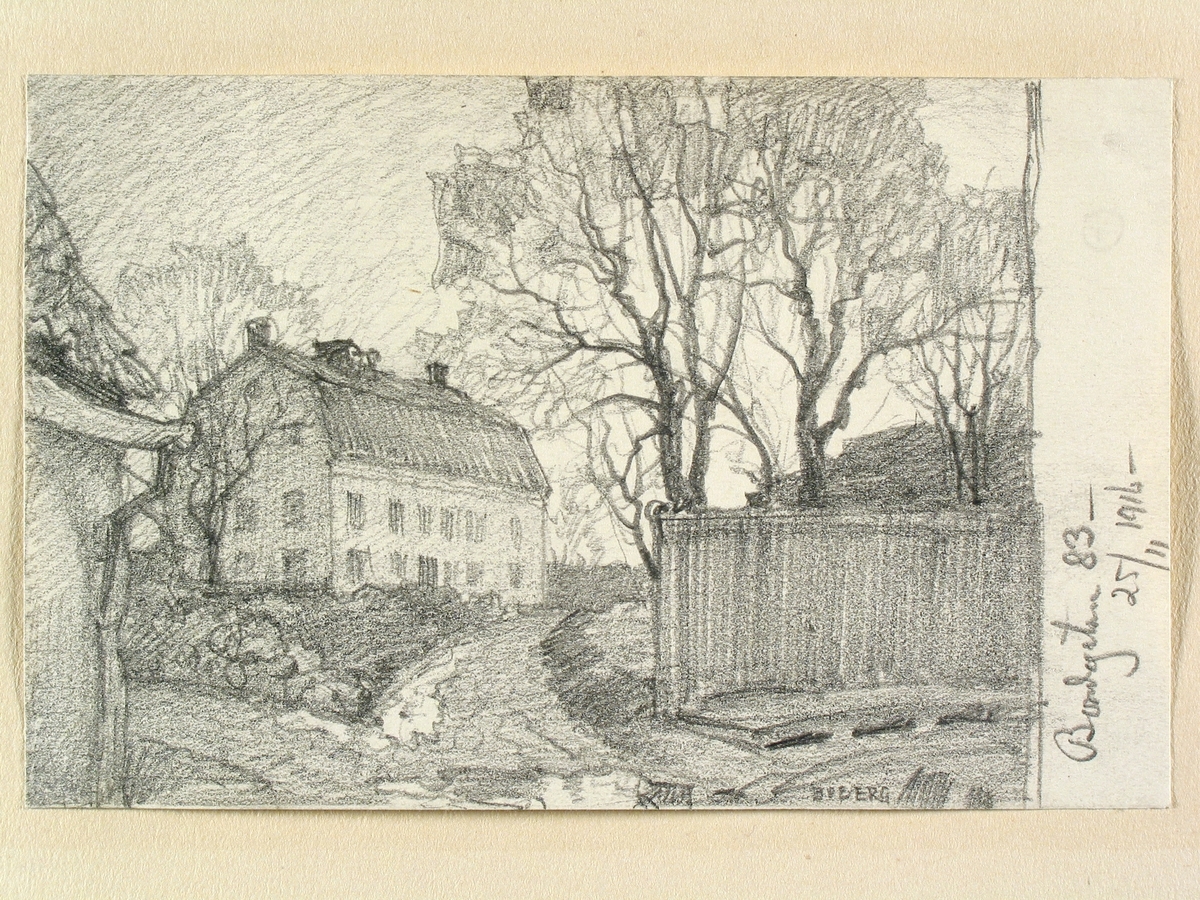 Teckning av Ferdinand Boberg. Stockholm, Söder, Kv. Vintern, Bondegatan 83