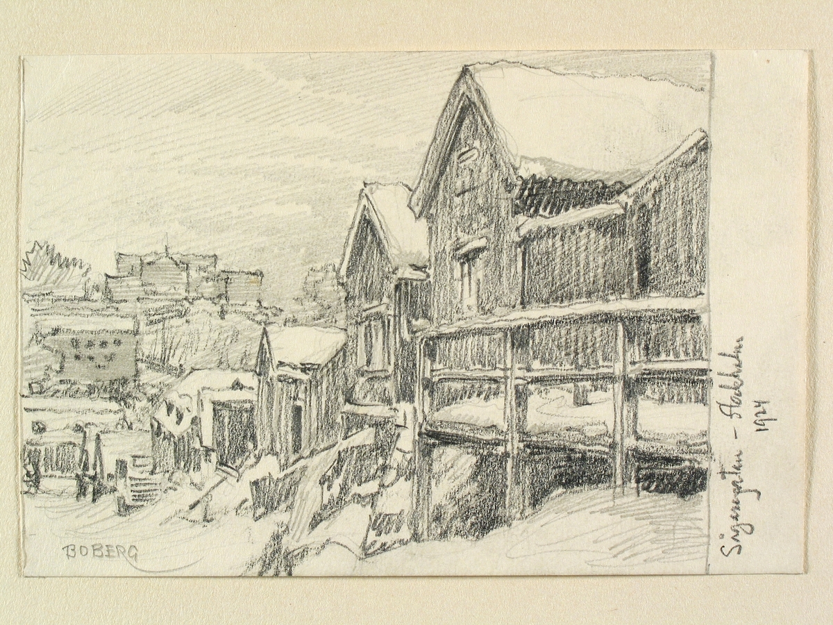 Titel: "Sågaregatan, Stockholm 1924", Södermalm.Teckning av Ferdinand Boberg.