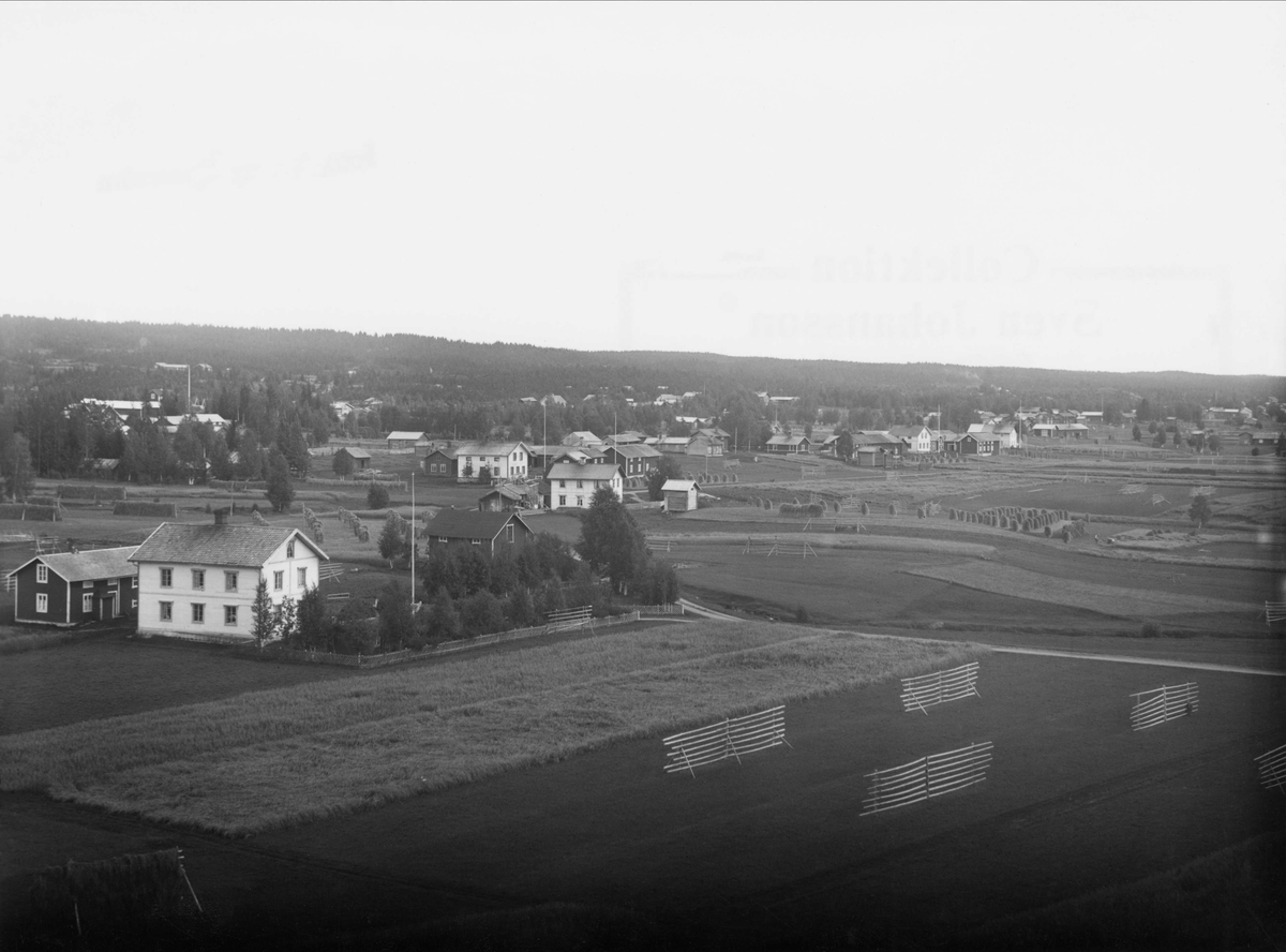 Titel: Risätra by, från norr. I förgrunden Erik Renströms hus. Taget från utsiktstornet