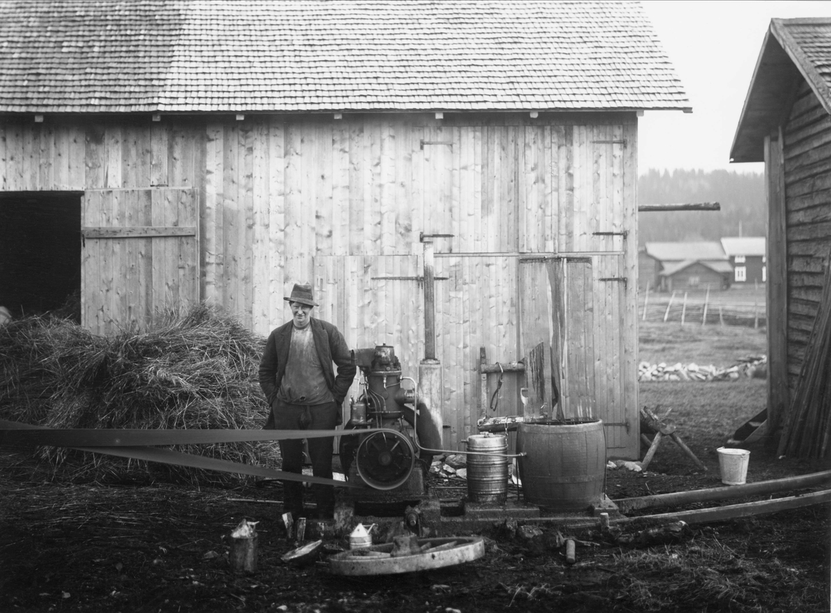 Maskinisten Lassar Albert Olsson vid sin tändkulemotor