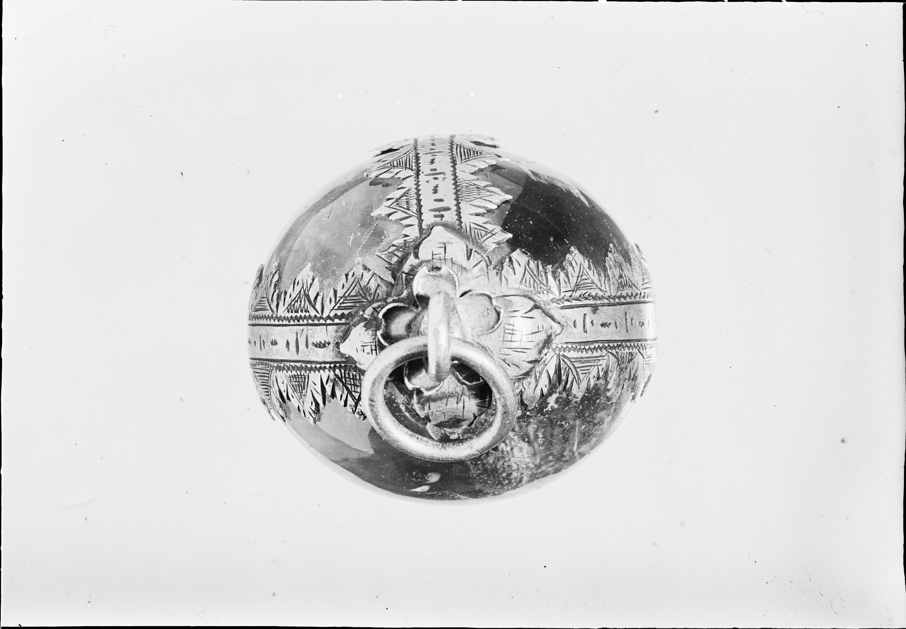 Korkåpa från 1500-talet: berlock av bergkristall tillhörande ryggskölden. Uppifrån.