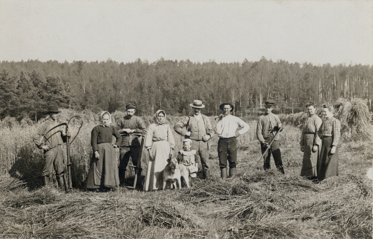 Småland. Östra hd. Karlstorps sn. Skördearbete i Griplund. Foto K. J. Nilsson, Mariannelund 1885. E.U. 1250. Ur NM 28 Skörd vol. 4