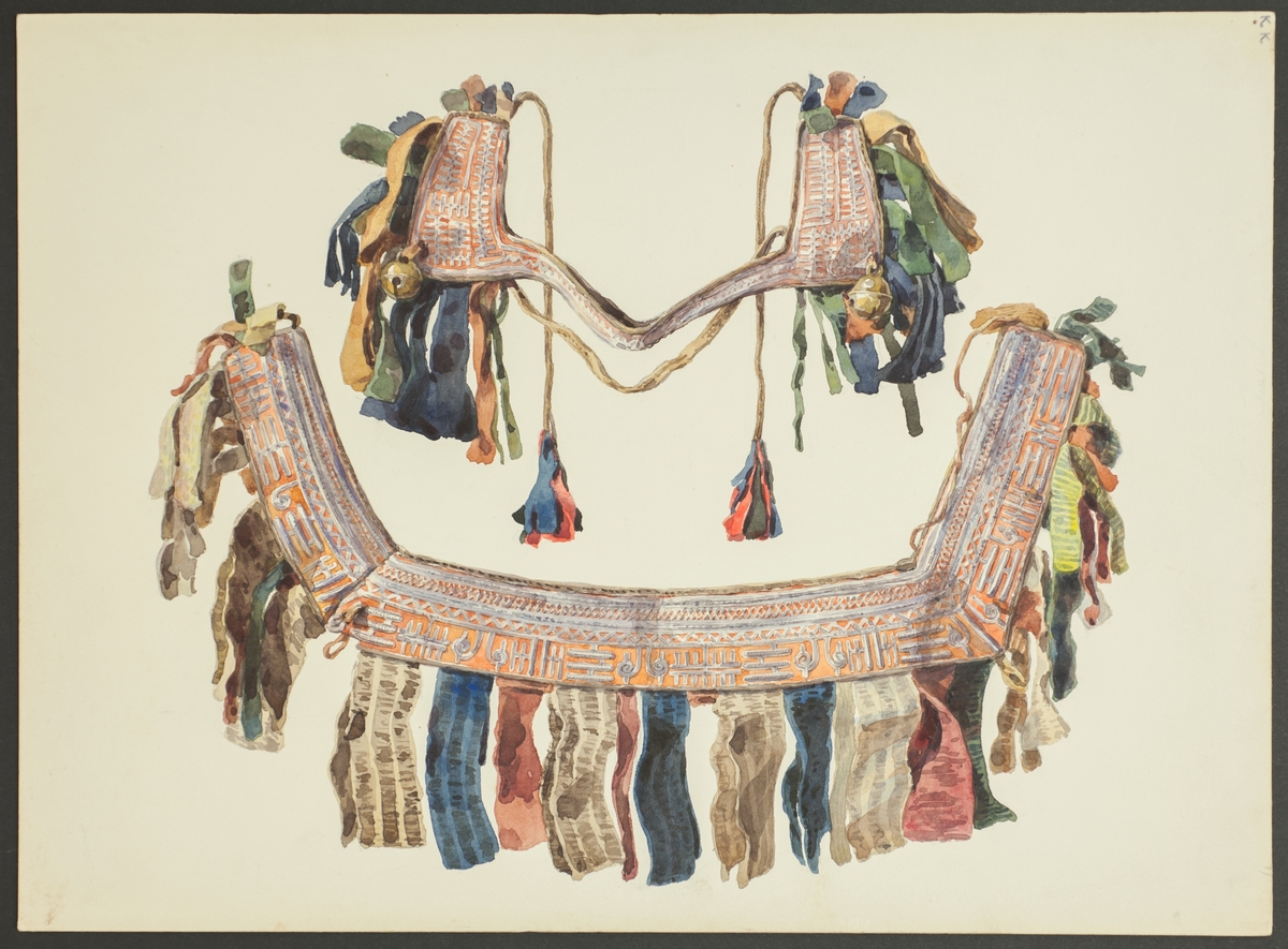 Akvarell utförd av Emelie von Walterstorff. Illustration av rengrimma och rensele, inv.nr NM.0073283 och NM.0089897.