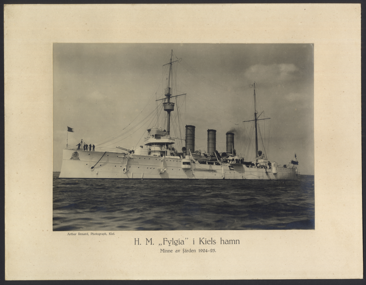 Bilden visar pansarkryssaren Fylgia i Kiels hamn.