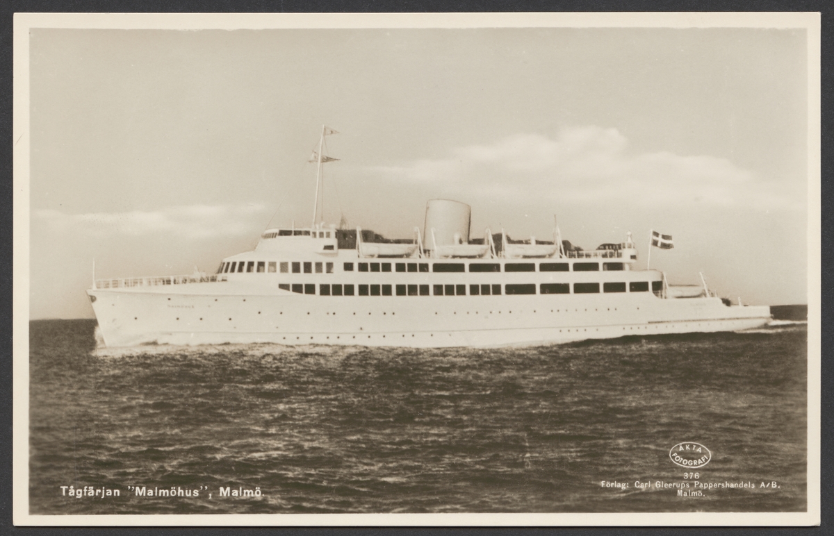 Titel: Vykortet visar tågfärjan Malmöhus till sjöss.