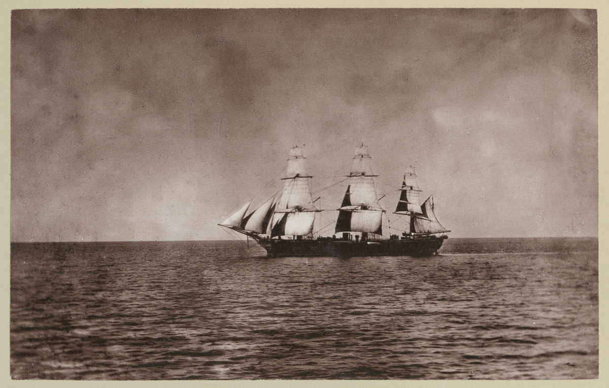 Bilden visar den tyska korvetten Stosch seglande till havs.