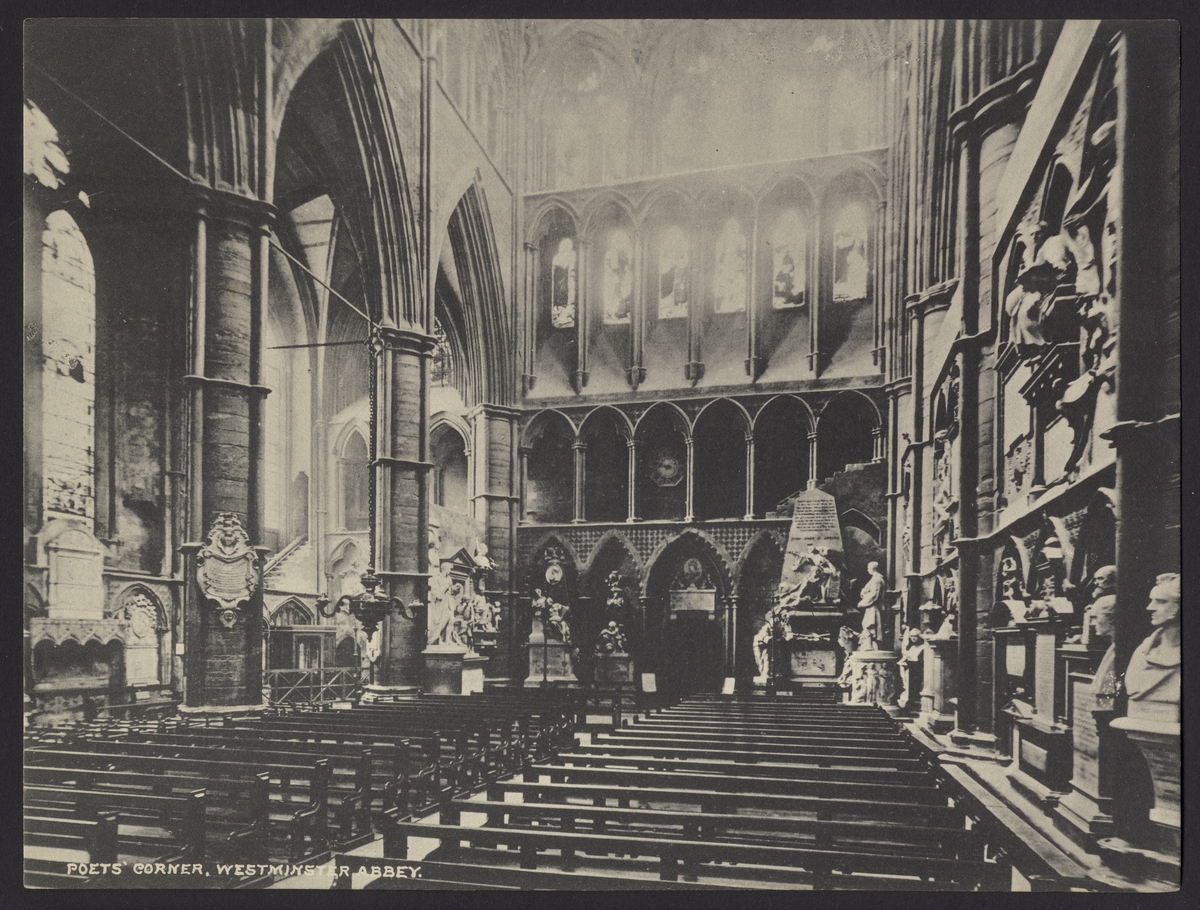 Titel: Bilden visar insidan av Westminsterabbey med Poets´Corner i London.