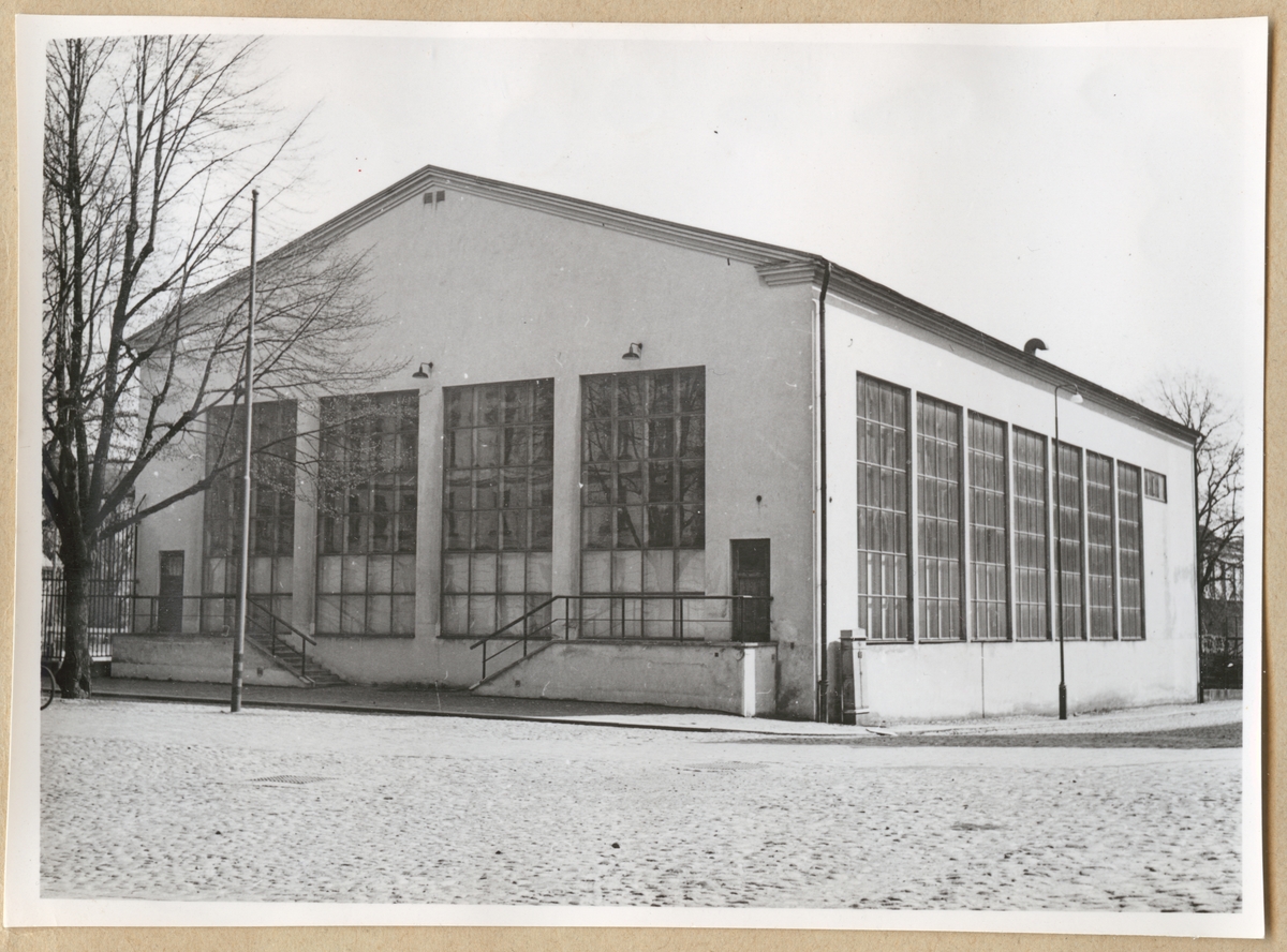 Titel: Simhallen på Sparre sedd från Drottninggatan.