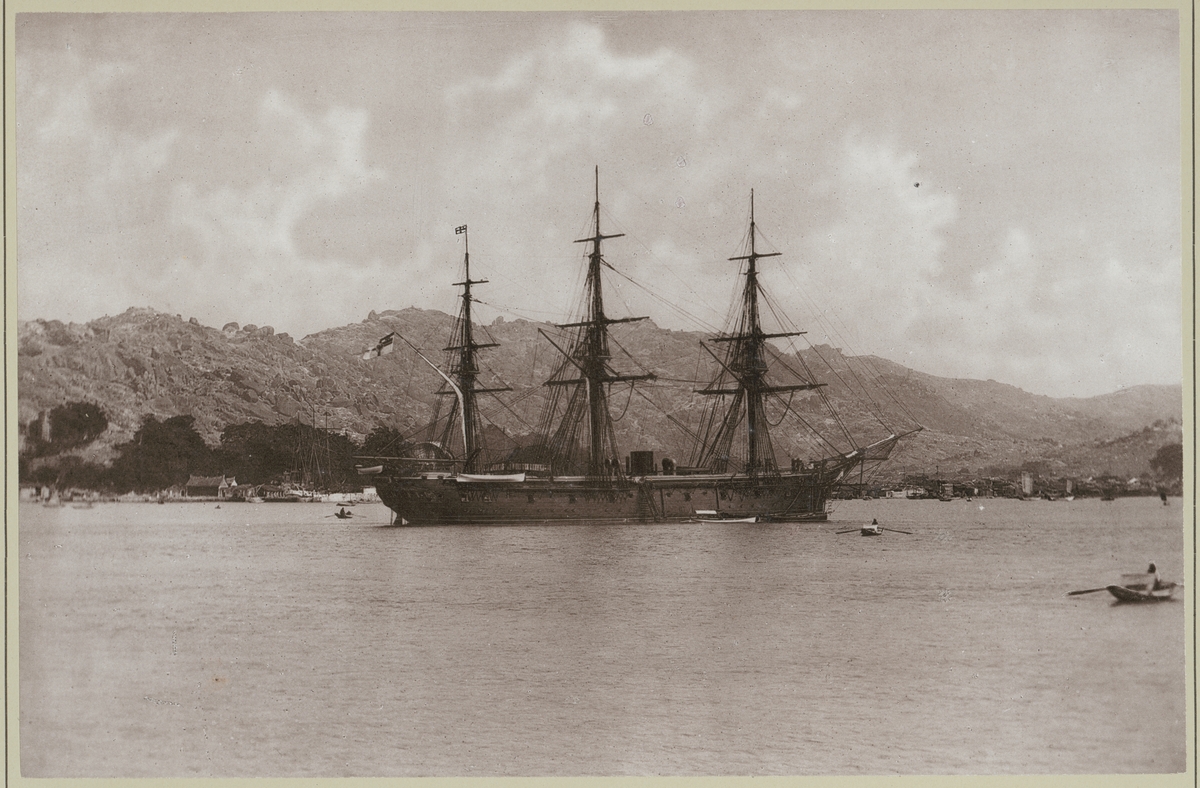 Bilden föreställer den tyska korvetten Stosch till ankars.
