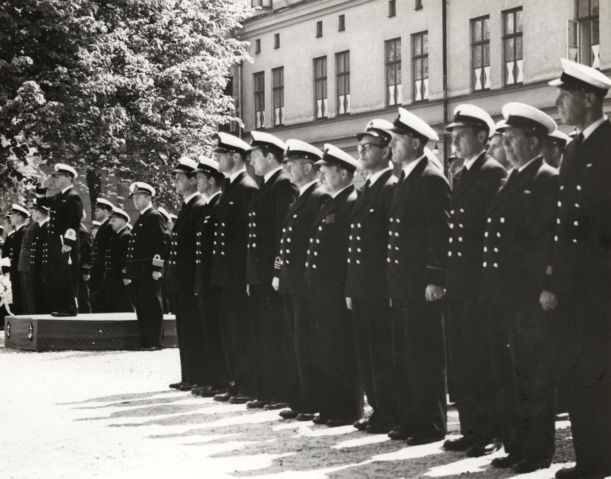 Titel: Sjöbefäl poserar fint på rad framför bataljon Trolle.