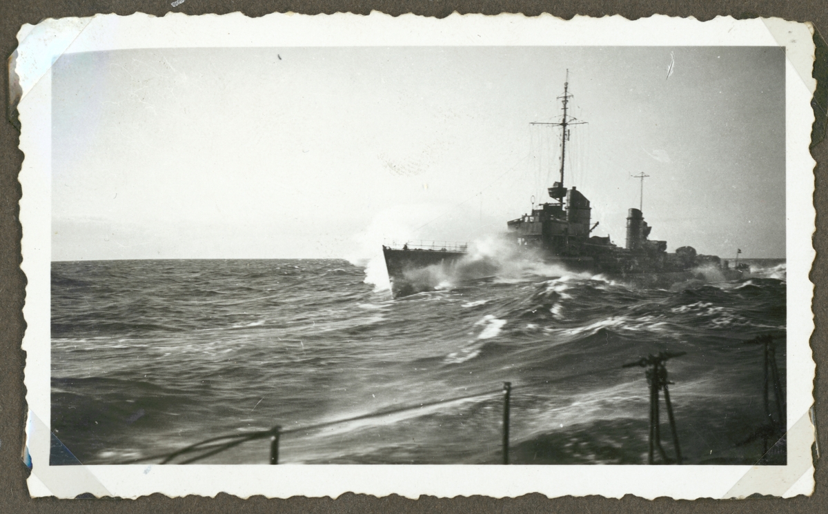Titel: Bilden visar en tysk jagara i hög fart till sjöss.