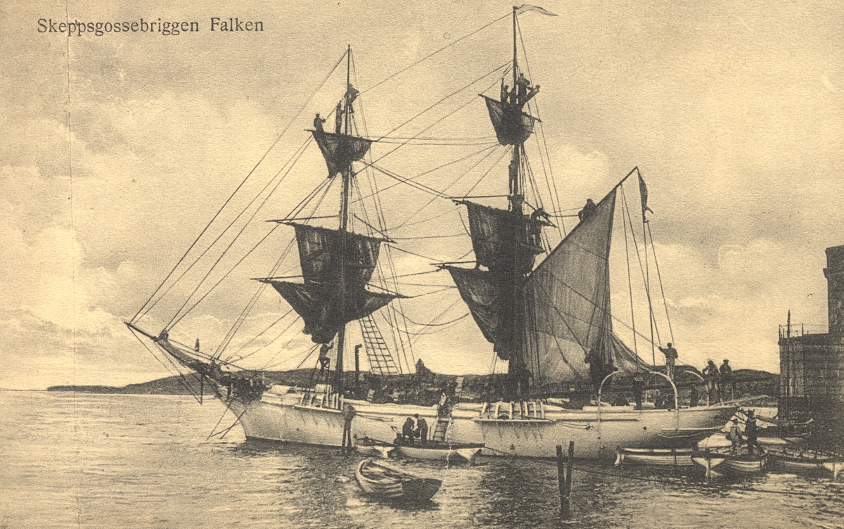 Titel: Vykort på Skeppsgossebriggen Falken.