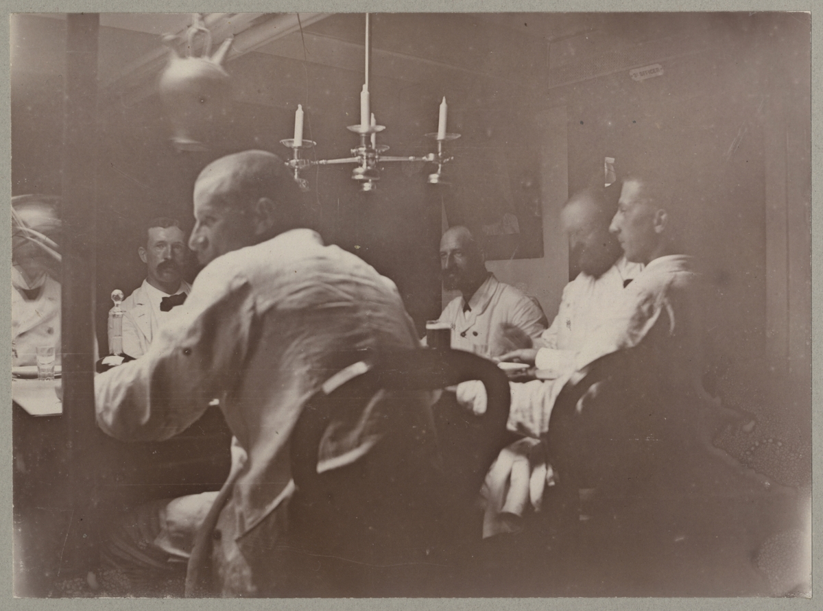 Titel: Bilden visar Balder officerare som sitter runt bordet i mässan.
