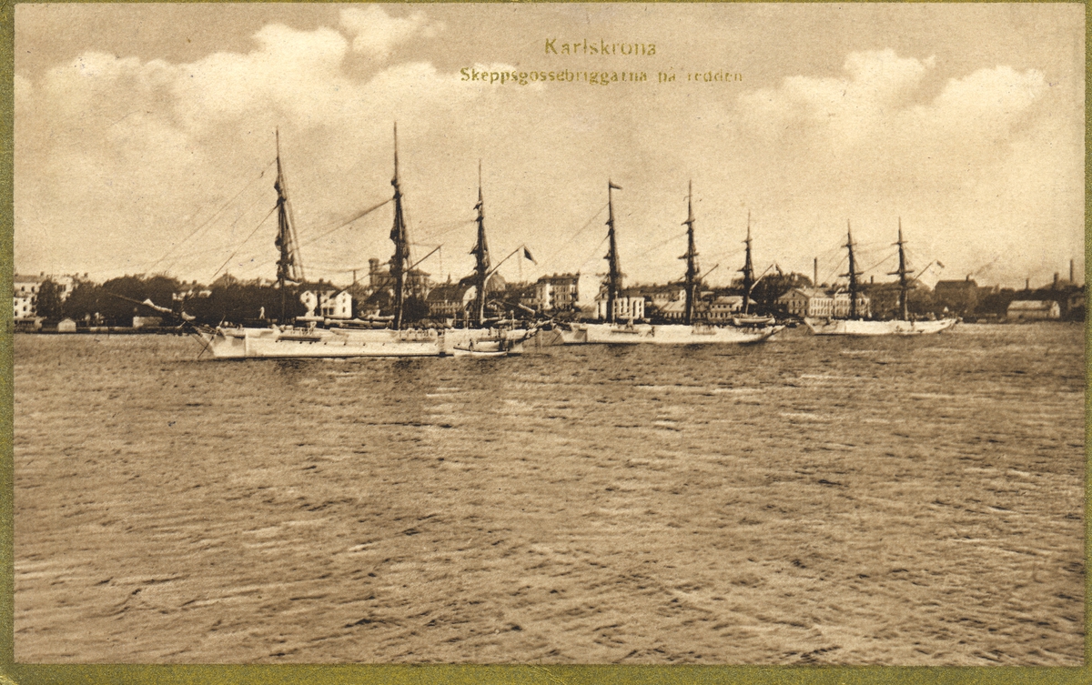 Titel: Vykort på Skeppsgossebriggarna på redden utanför Karlskrona