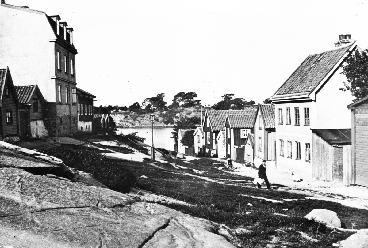 Titel: Krister Hornsgatan på Björkholmen i Karlskrona taget efter 1867.
