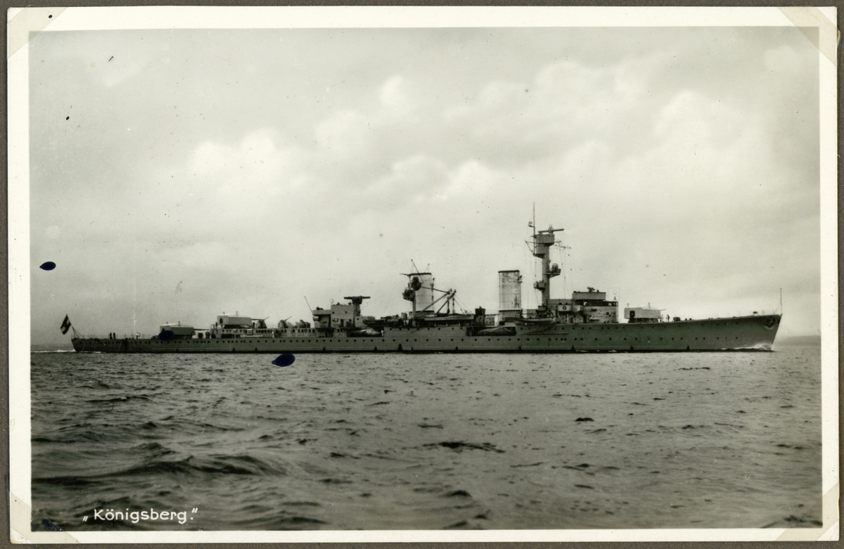 Titel: Denna vykort visar den tyske kryssaren Königsberg till sjöss.