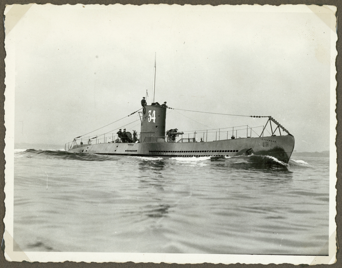 Titel: Bilden visar den tyske ubåten U 34 i ytläge till havs.