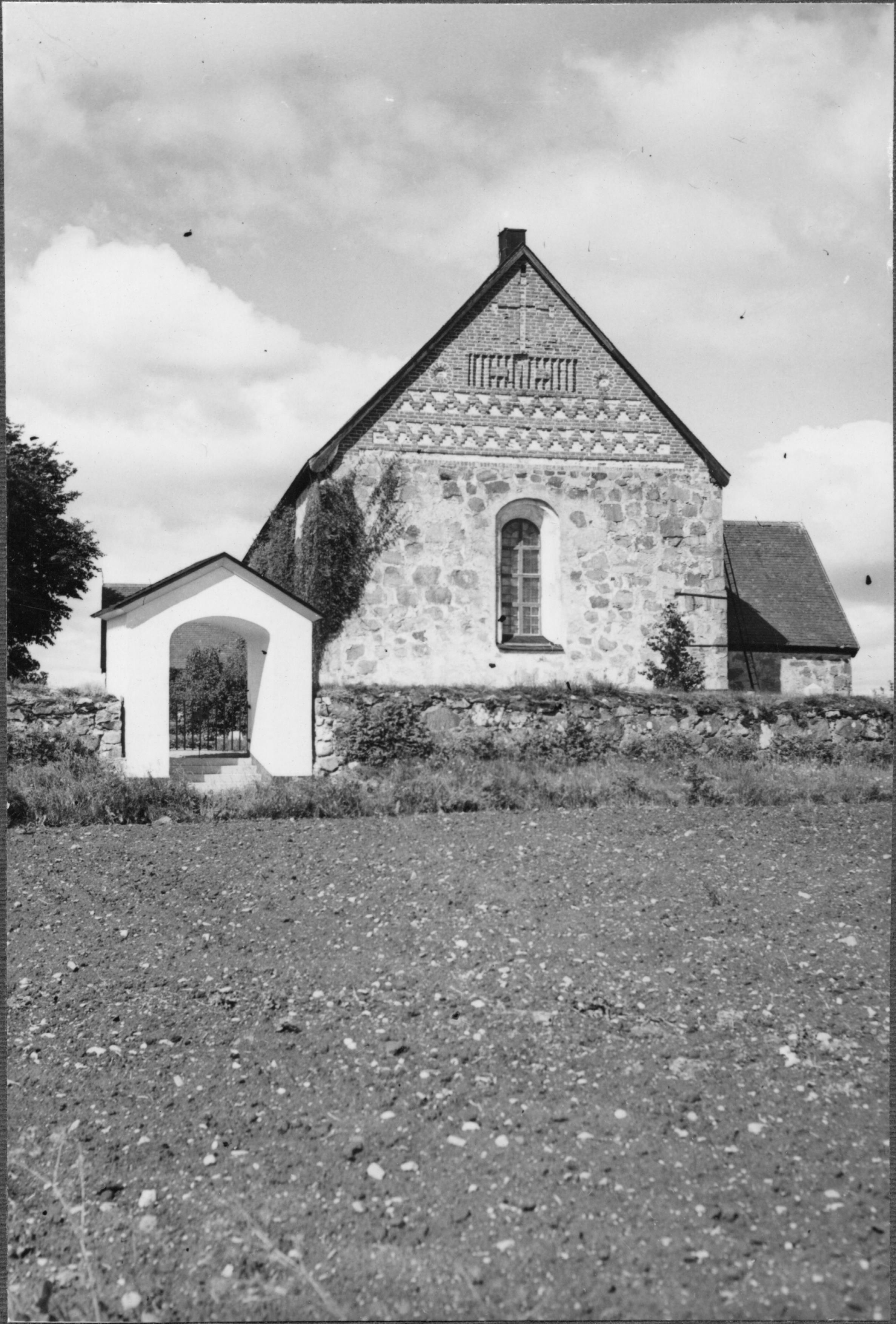 Kyrkan mot öster, med stiglucka. Foto för Uppsala Ärkestift i Ord och Bild, 1954.