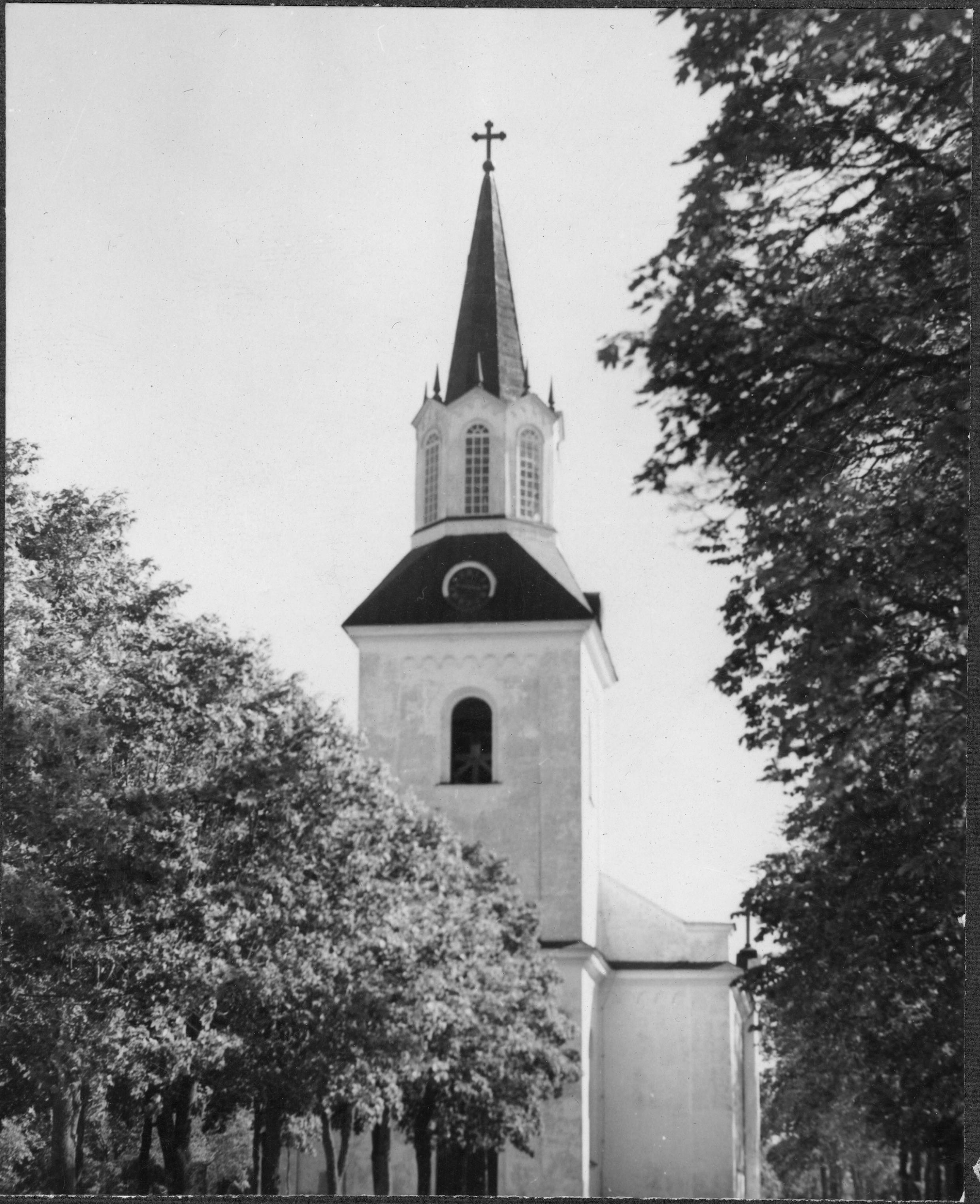Kyrkan mot norr och tornets fasad. Foto för Uppsala Ärkestift i Ord och Bild, 1954.