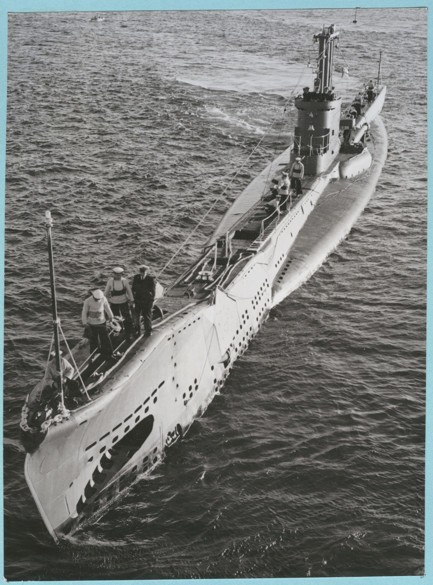 En av de brittiska ubåtarna H.M.S. /M Anchorite eller H.M.S. /M Alliance. Från Engelska besöket i Karlskrona den 9-14 september 1951.
