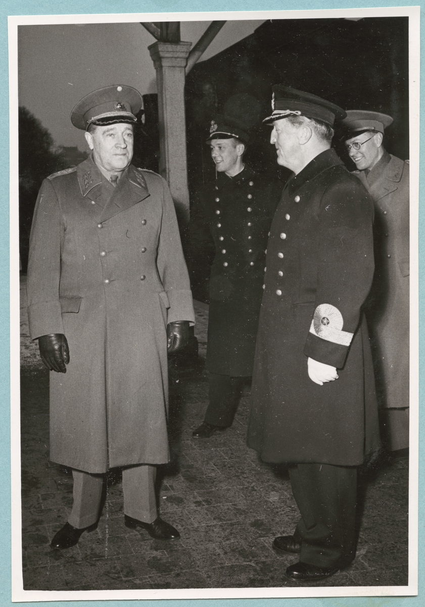 Titel: Konteramiral Samuelson står uniformsklädd ihop med militärer från flottan och armén.