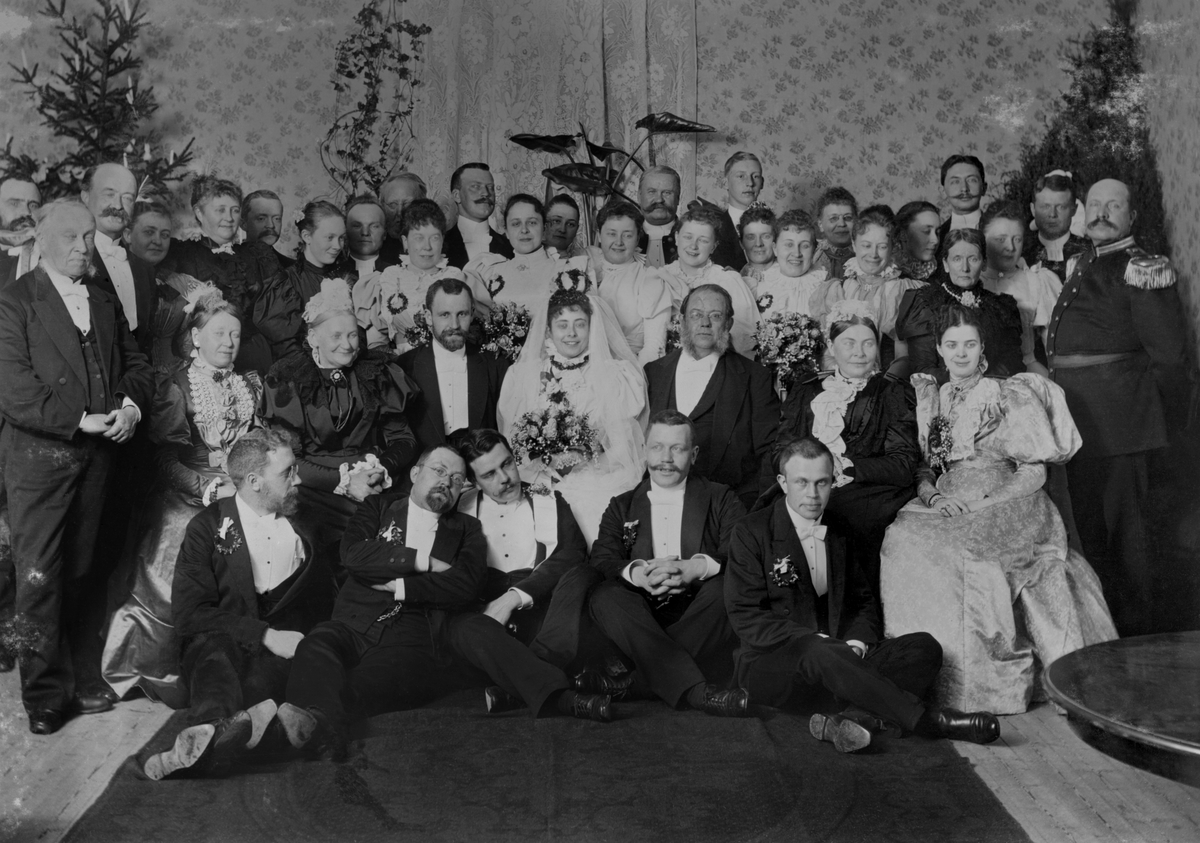 Bröllop den 28 december 1896 i bankdirektör J. Ahlbergs mors hem, Östra Hamngatan 2, Göteborg, mellan dennes broder Vincent och Helga Bergmark.