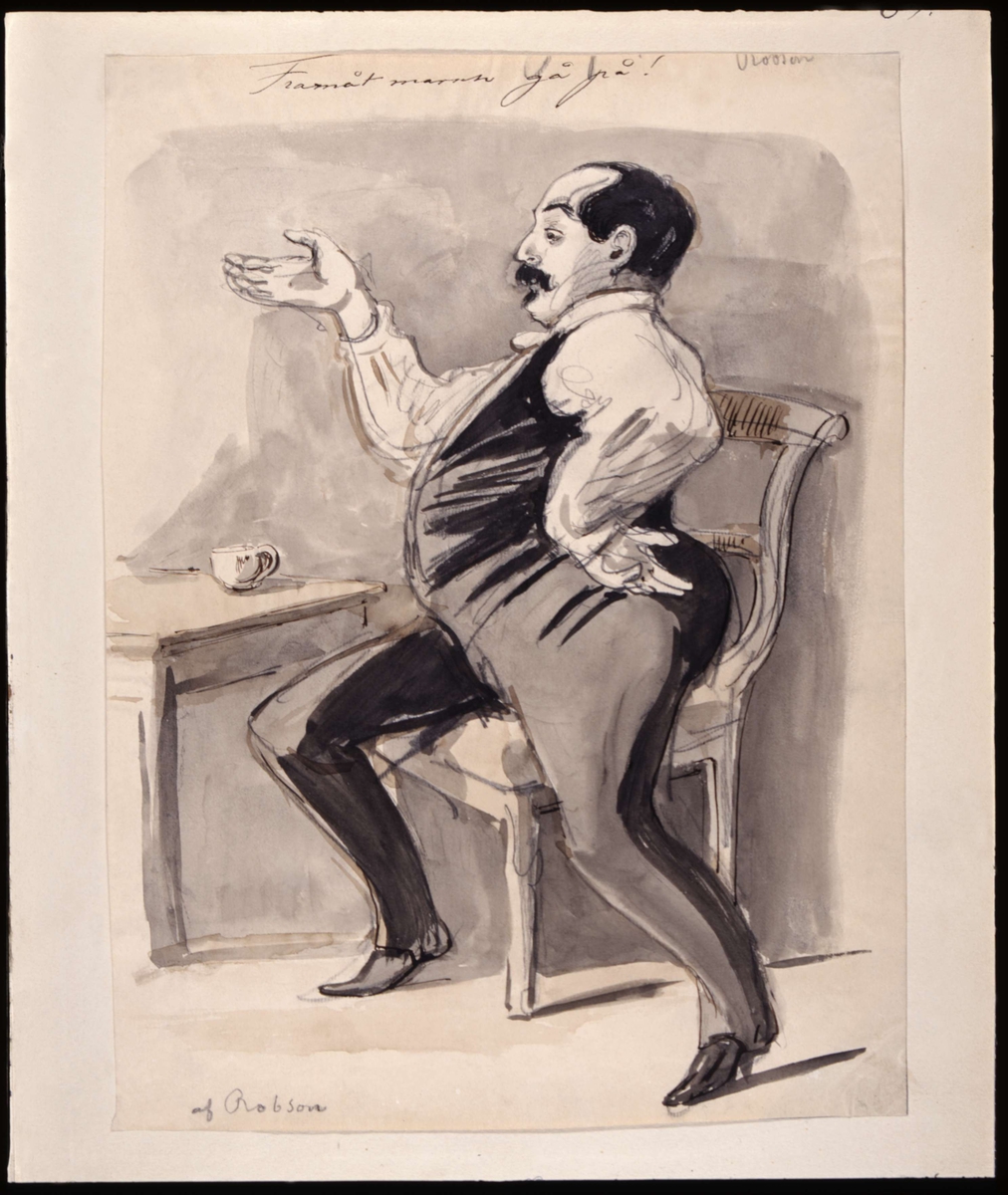 "Framåt marsch, gå på. Af Robson". Sepia, tuschlavering av Fritz von Dardel