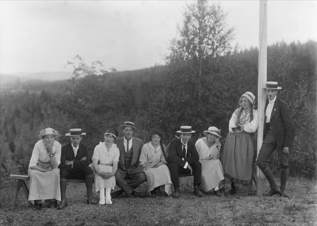 Ungdomar på cykelutflykt till Sälen och Wasastenen. Maria Olsson, Johannes Färdigsson, Signe Skotte, Joel Olsson, Elsa Nyberg, Karl Hedlöf, Jenny Engström, Gerda Jonsson, George Renström.