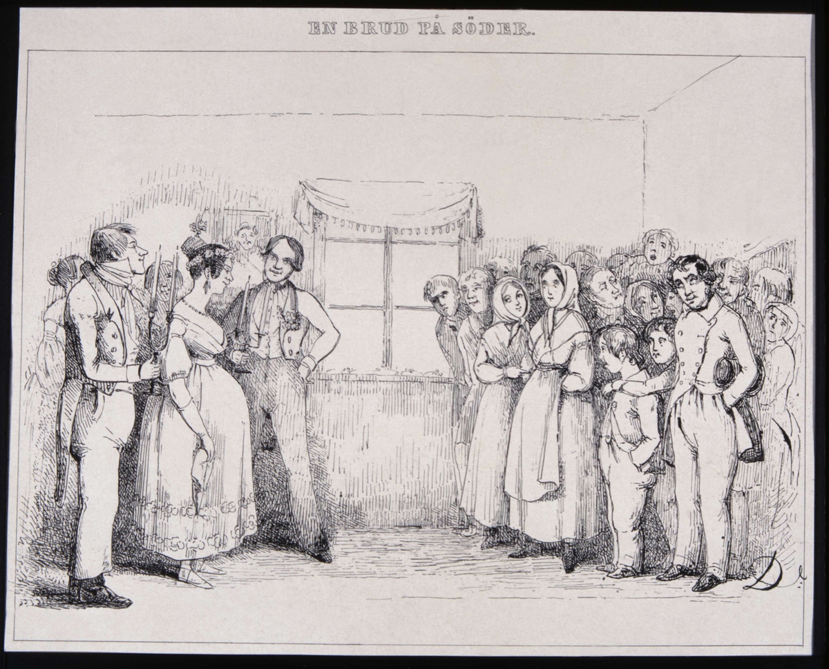 "En brud på söder." Litografi av Fritz von Dardel, 1850-tal.
