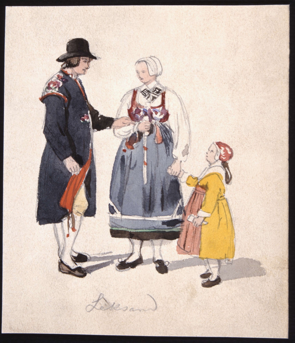 Man, kvinna, flicka i Leksand. Akvarell av Fritz von Dardel