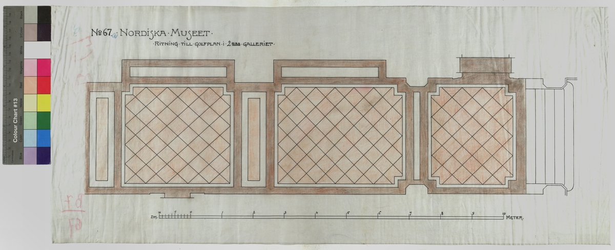 plan i andra galleriet (Parkett). Plan. 30,5x71 cm. Golv.Tusch, brun färgpenna. Linjalritning. Osignerad.