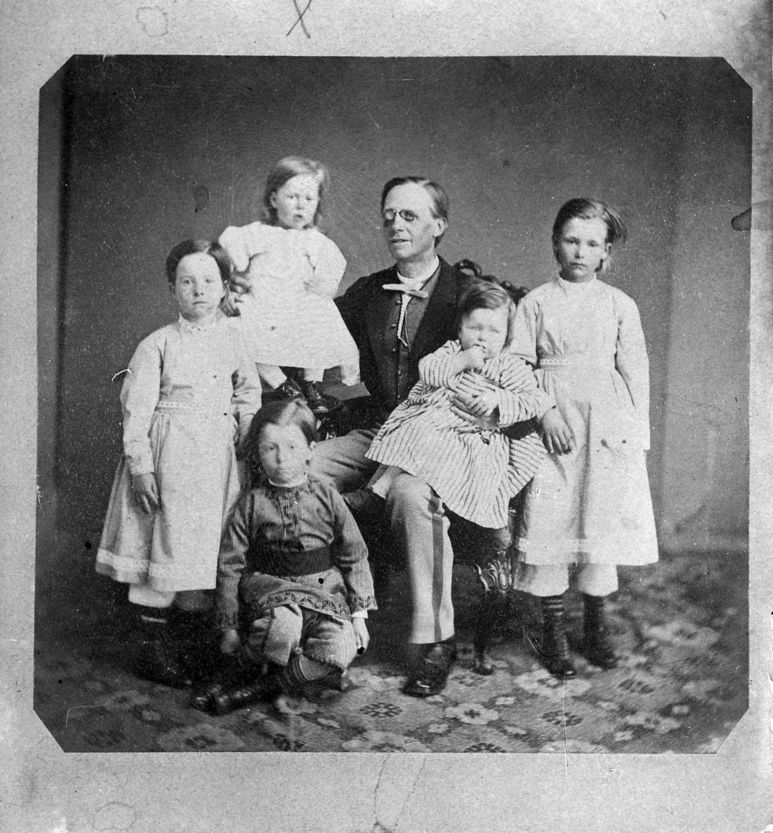 Reproduktion av en gruppbild av en far med sina fem barn.