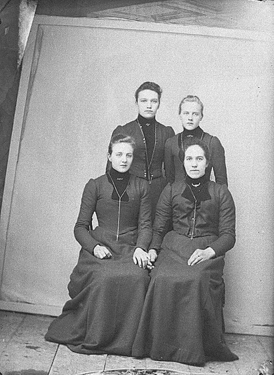 Gruppbild, fyra kvinnor. Transtrand, Dalarna.