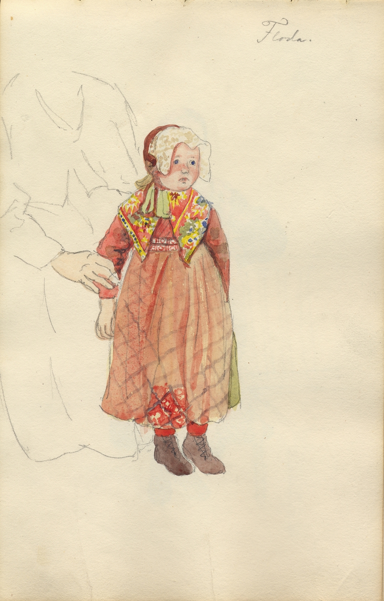Akvarell. Liten flicka från Floda i Dalarna. . Ur Skissbok av A. J.G. Virgin.
