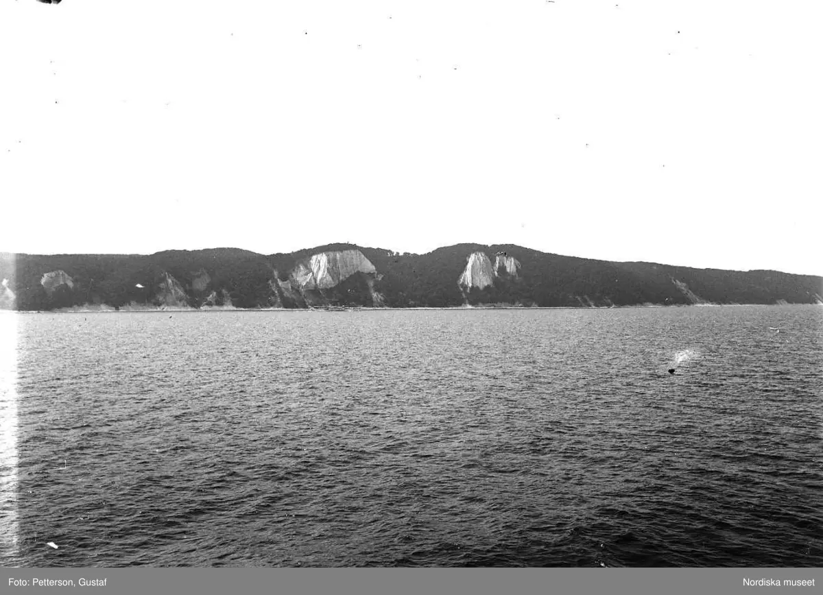 Vy från norra Tyskland. Strandparti på Rügen, Stubbenkammer, en hjulångare.