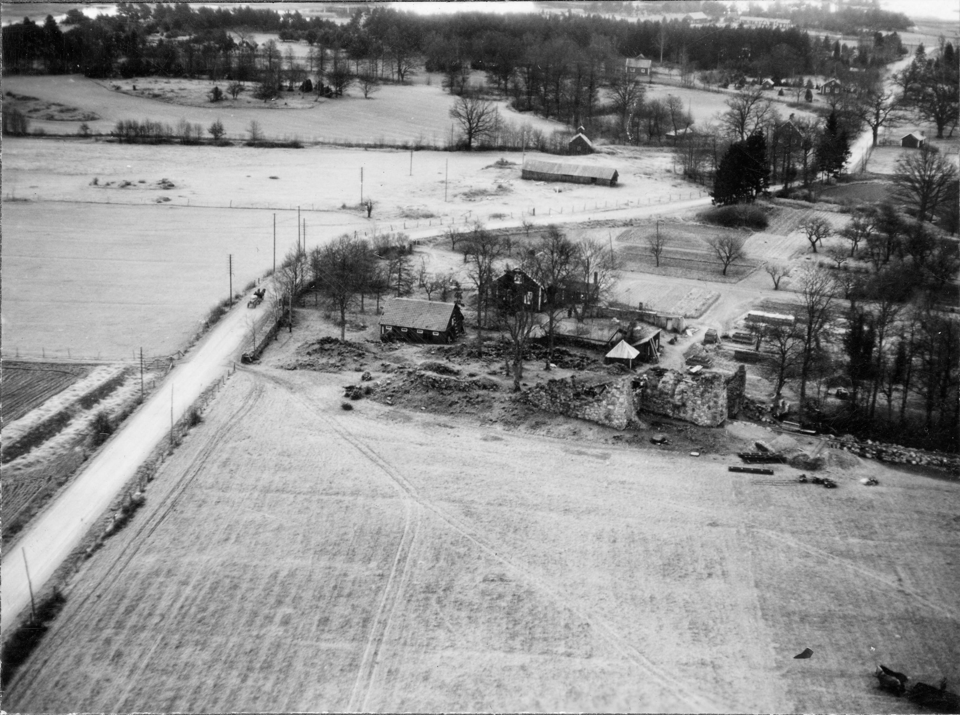 Klosterruinen och dess omgivning, mot norr. Flygfoto.