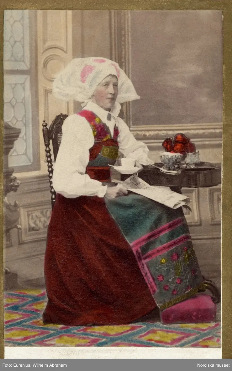 Givarinnan av detta foto har själv köpt en dräkt av henne och som hon skänkt till museet. Hon har även besökt museet och blivit fotad. Detta foto finns i arkivet. Anna - Maja Nylén