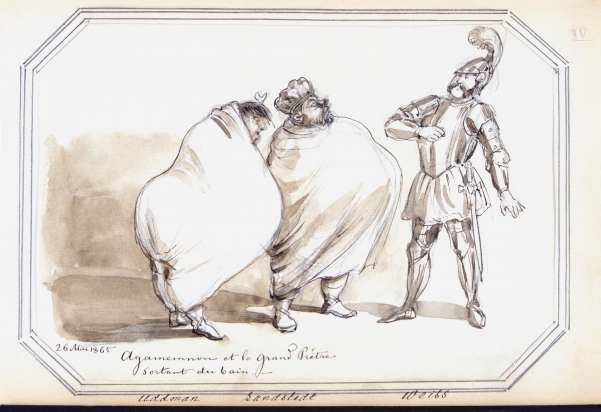 "Agamemnon et le grand prêtre sortant du bain. Uddman, Sandstedt, Weiss." Akvarell av Fritz von Dardel, 26 maj 1865.