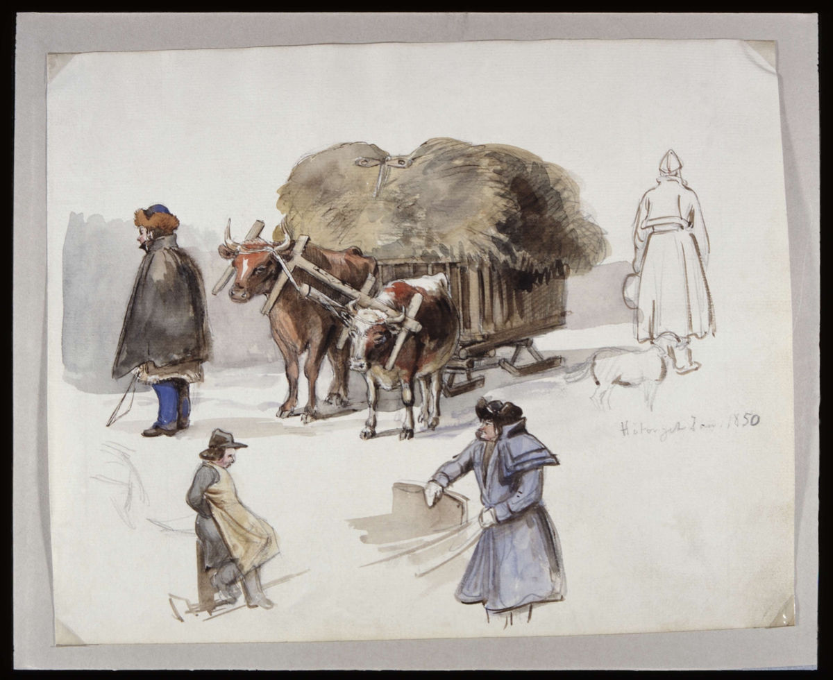 Hötorget januari 1850." Akvarell av Fritz von Dardel, 1850