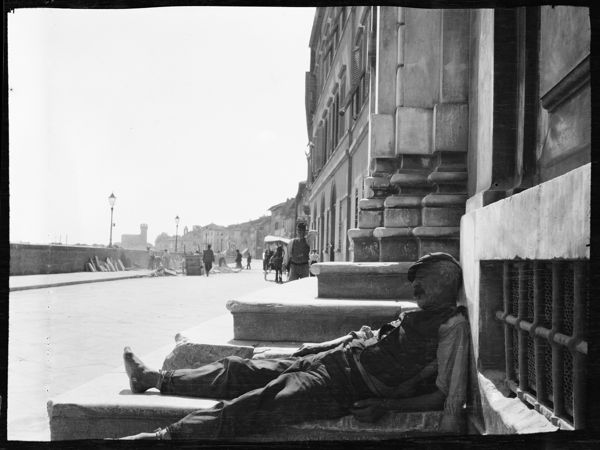 Sovande man lutad mot en husvägg. Troligen Triana eller Sevilla, Spanien