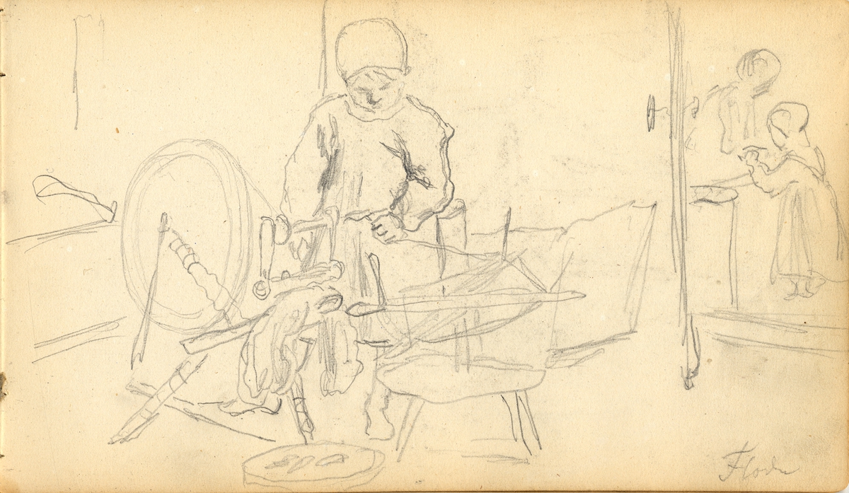 Pojke spinner garn. Floda. Ur J.A Malmströms skissböcker.