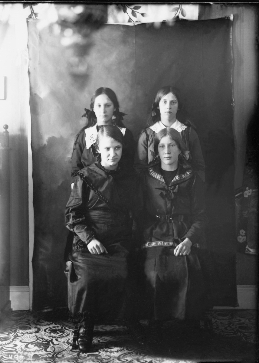 Skolkamrater, stående från vänster Beris Hedvig Eriksson, Lissola Agnes Larsson, sittande Lissola Märta Martinsson och Beris Gunborg Persson. Lima, Dalarna