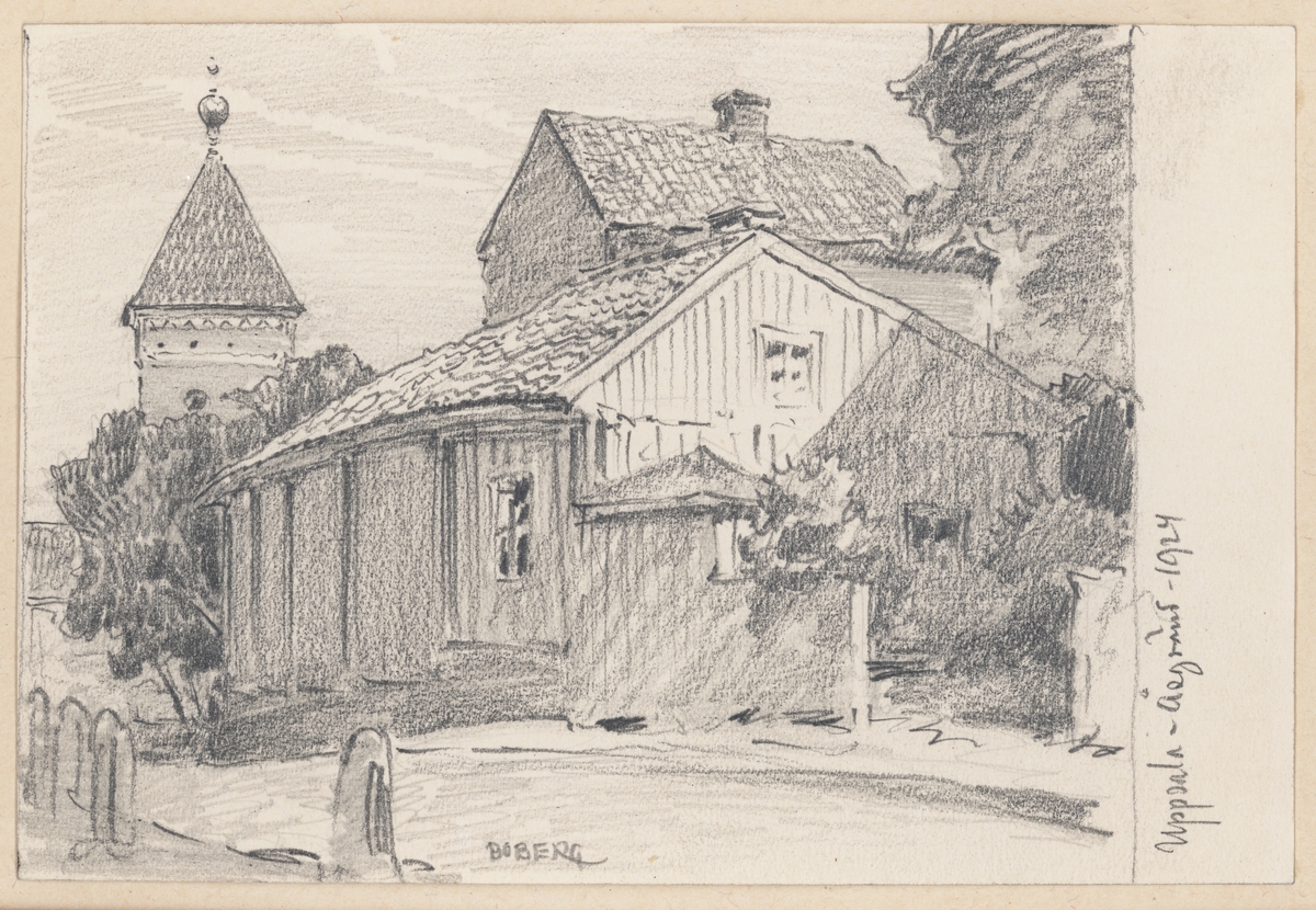 Uppsala. Åsgränd 1924. Blyertsteckning av Ferdinand Boberg.